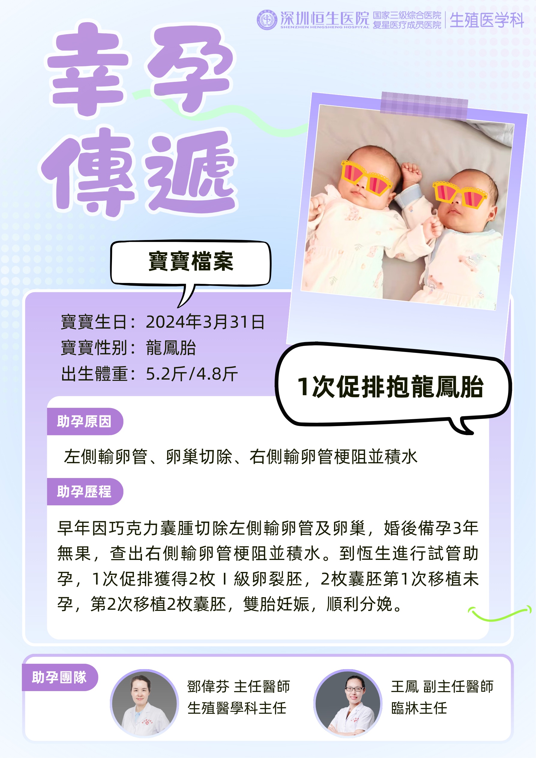 1次移植抱龍鳳胎